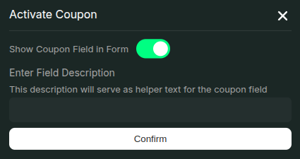 - In the modal that appears, enable the Show Coupon Field in Form toggle.