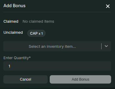 Unlike the Inventory option, this mode requires scanning the guest’s QR code first to display the list of available items. The organizer can then select and claim a specific item.
